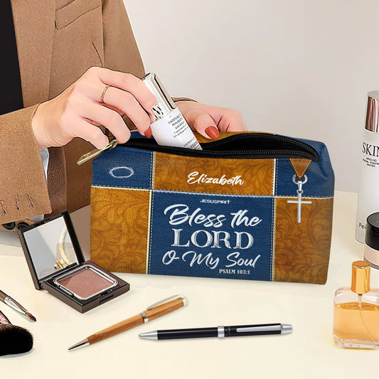 Personalized Zippered Leather Pouch Psalm 1031 Bless The Lord O My Soul - Religious Gift For Worship Friend