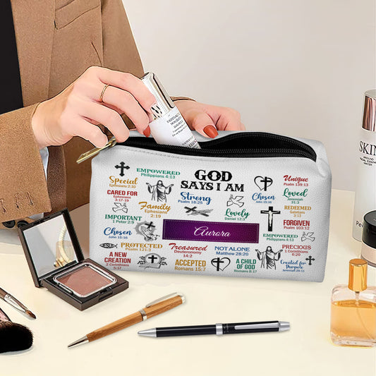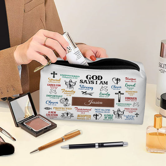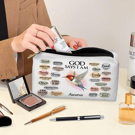 What God Says About You Personalized Leather Pouch With Zipper - Christ Gifts For Religious Women