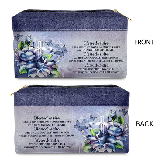 Rose & Cross Blessed Is She Who Daily Imparts Nurturing Care And Kindness Of Heart Personalized Leather Pouch With Zipper