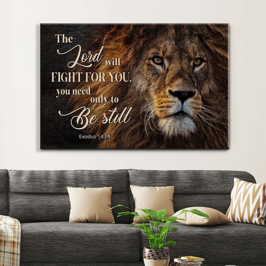 Lion Of Judah, Exodus 1414 The Lord Will Fight For You Wall Art Canvas - Religious Wall Decor