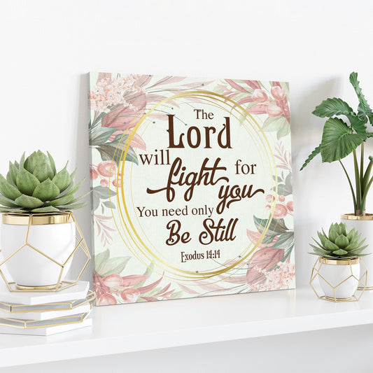 Floral Exodus 1414 The Lord Will Fight For You Art Canvas Wall Art - Bible Verse Wall Art - Christian Decor