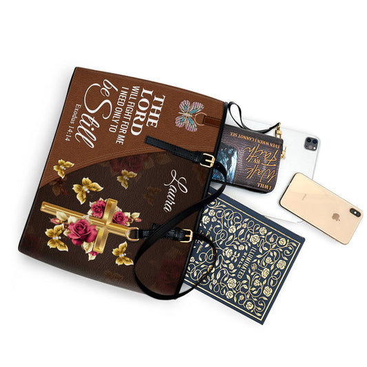 The Lord Will Fight For Me Personalized Pu Leather Tote Bag For Women - Mom Gifts For Mothers Day
