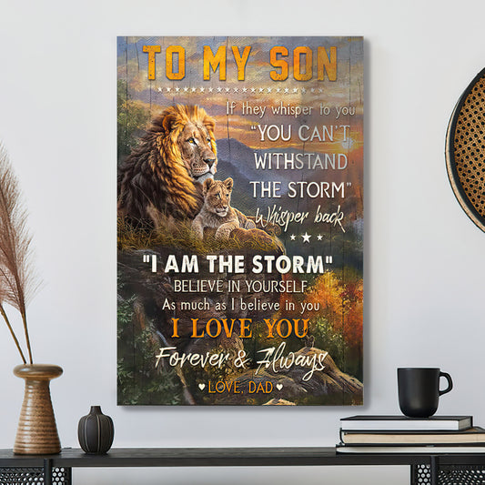 To My Son - Lion Dad - I Am The Storm - Dad Son Canvas Prints - Best Gift For Son - Ciaocustom