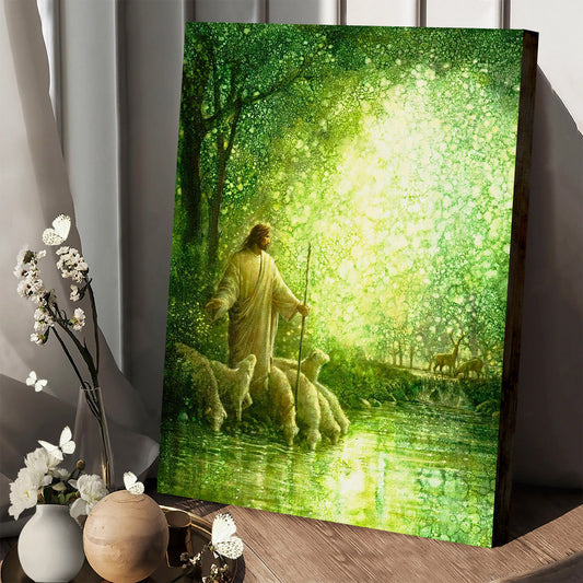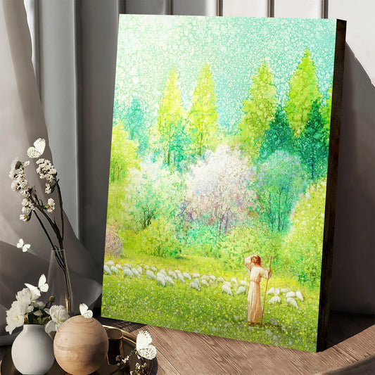 Jesus And The Lamb Picture - I Shall Not Want Portrait Canvas Wall Art - Christian Wall Decor
