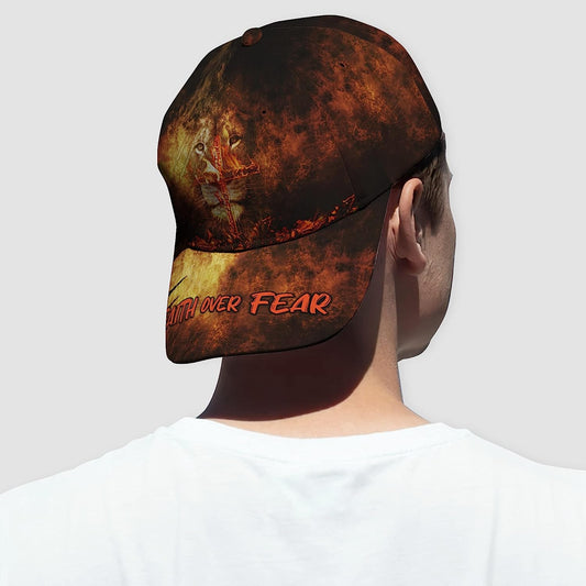 Lion With Christian Cross On Fire Faith Over Fear All Over Print Baseball Cap - Christian Hats For Men Women