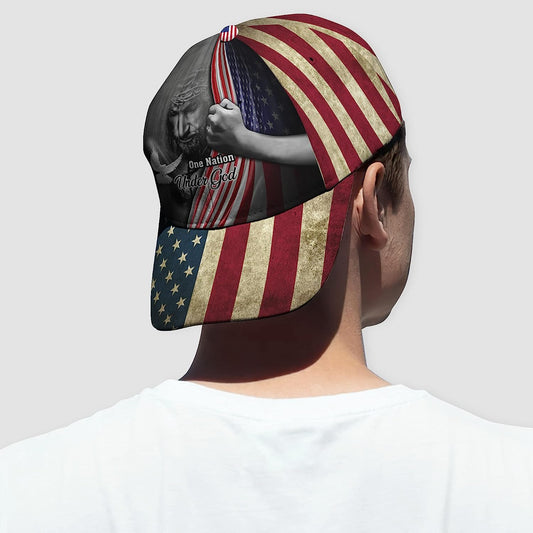 One Nation Under God American Flag And God And Dove All Over Print Baseball Cap - Christian Hats For Men Women