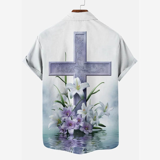 Easter Cross Lily Christian Hawaiian Shirt - Hawaiian Beach Shirts for Men Women