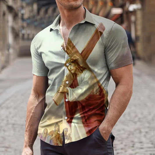 Jesus Christ Carrying The Cross Christian Hawaiian Shirt - Hawaiian Beach Shirts for Men Women