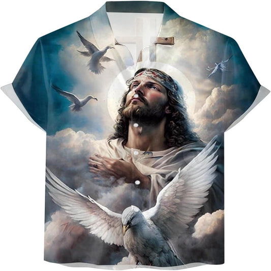 Jesus Cross Dove Christian Hawaiian Shirt - Hawaiian Beach Shirts for Men Women
