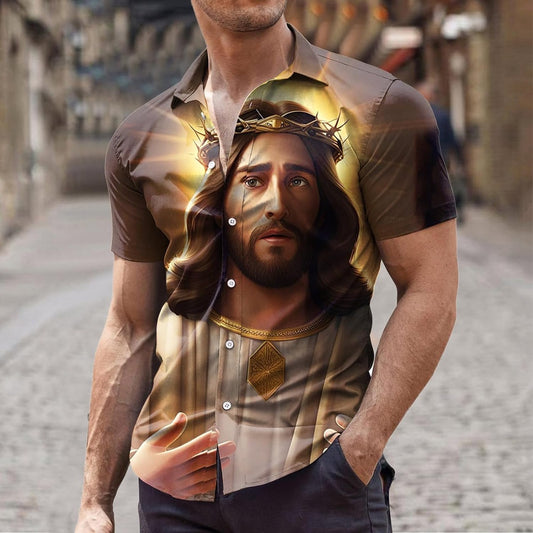 Jesus Crown Of Thorns Christian Hawaiian Shirt - Hawaiian Beach Shirts for Men Women