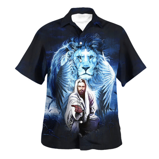 Jesus On The Cross Lion Of Judah Hawaiian Shirt - Christian Hawaiian Shirt - Religious Hawaiian Shirts