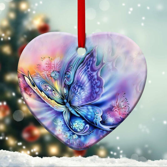 Butterfly Color Art Heart Ceramic Ornament - Christmas Ornament - Christmas Gift
