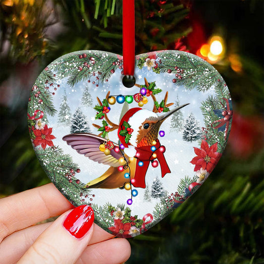 Hummingbird Christmas Light Heart Ceramic Ornament - Christmas Ornament - Christmas Gift