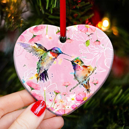 Hummingbird Couple Heart Ceramic Ornament - Christmas Ornament - Christmas Gift