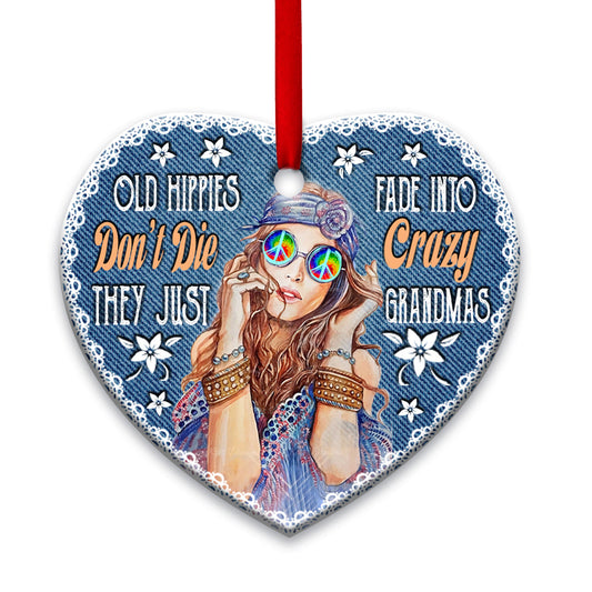 Hippie Old Hippies Dont Die They Just Fade Into Crazy Grandmas Heart Ceramic Ornament - Christmas Ornament - Christmas Gift