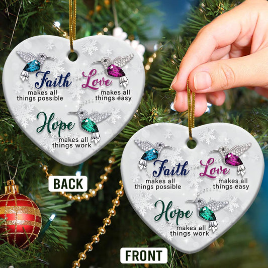 Hummingbird Faith Jewelry Style Heart Ceramic Ornament - Christmas Ornament - Christmas Gift
