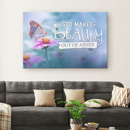 God Makes Beauty Out Of Ashes Isaiah 613 Bible Verse Wall Art Canvas - Religious Wall Decor