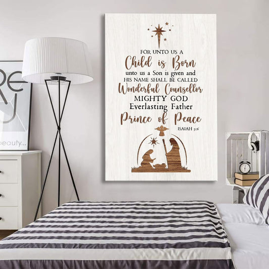 Christian Christmas Isaiah 96 For Unto Us A Child Is Born Canvas Art - Bible Verse Canvas - Scripture Wall Art