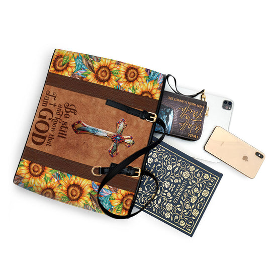 Be Still And Know That I Am God Large Leather Tote Bag - Christ Gifts For Religious Women - Best Mother's Day Gifts