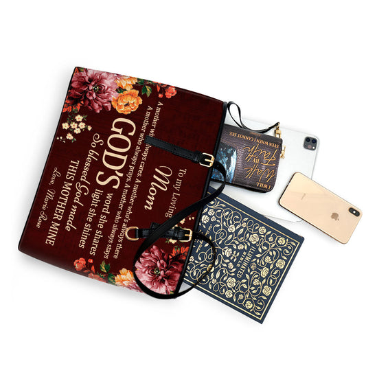 Personalized Large Leather Tote Bag To My Loving Mom - Spiritual Gifts For Christian Women