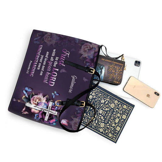 Personalized Large Leather Tote Bag Trust In The Lord With All Your Heart - Religious Gifts For Women Of God