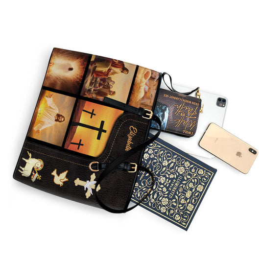 Picture of Jesus Personalized Large Leather Tote Bag - Religious Gifts For Women Of God