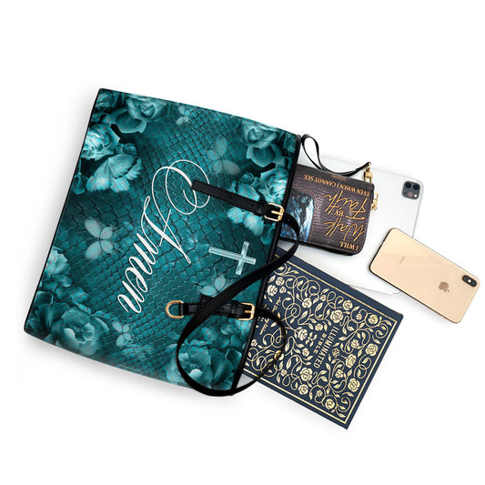 Cross Amen Large Leather Tote Bag - Christ Gifts For Religious Women - Best Mother's Day Gifts