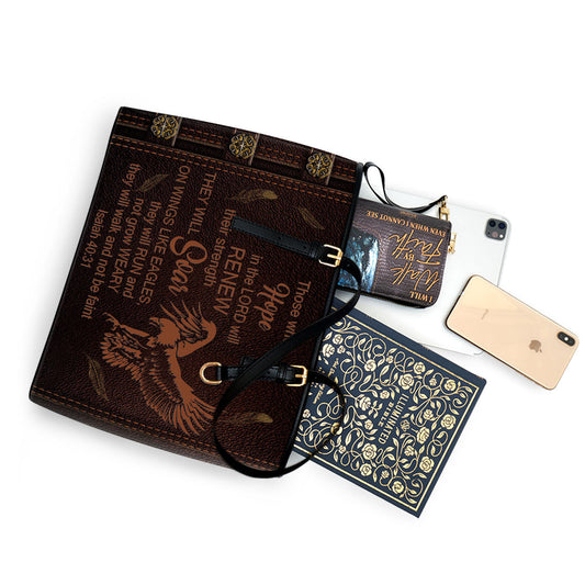 Eagle They Will Run And Not Grow Weary Large Leather Tote Bag - Christ Gifts For Religious Women - Best Mother's Day Gifts