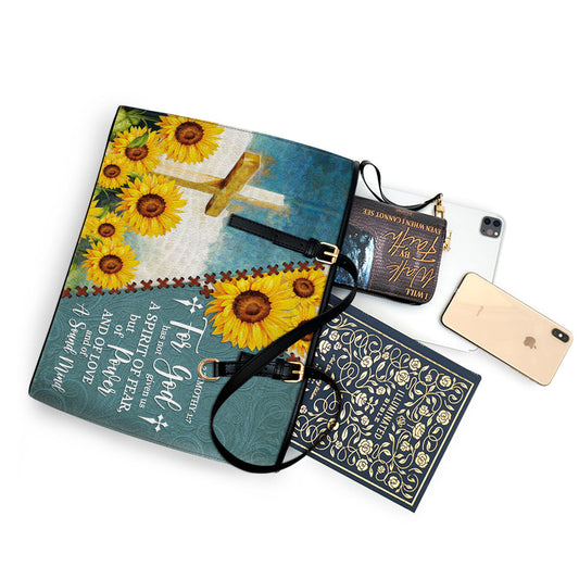 For God Has Given Us A Spirit Of A Sound Mind Large Leather Tote Bag - Christ Gifts For Religious Women - Best Mother's Day Gifts