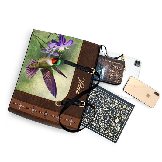 Ruby Throated Hummingbird Personalized Leather Tote Bag Gift For Church Staff Bible Bag - Religious Gifts For Women Of God