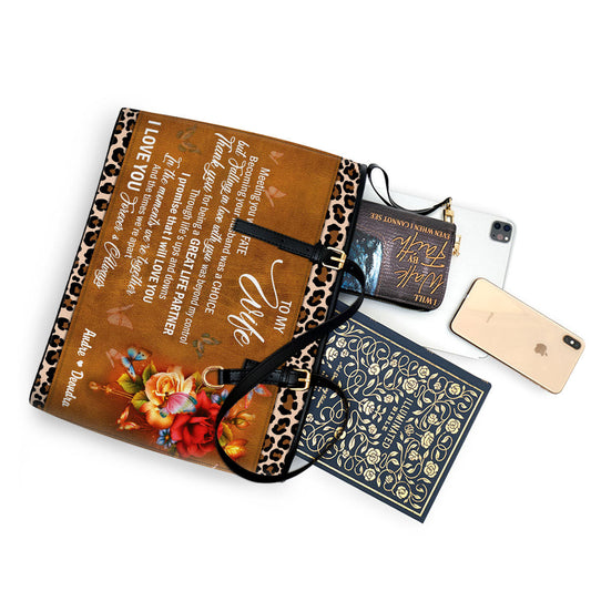 To My Wife Meeting You Was Fate Personalized Large Leather Tote Bag - Religious Gifts For Women Of God