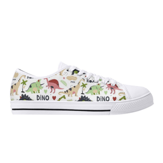 Dinosaur Cartoon Low Top Canvas Shoes, Animal Print Canvas Shoes, Print On Canvas Shoes