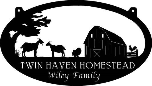 Custom Metal Farm Sign With Barn And Goats Pig Chicken Sign With Your Name Metal Wall Art Metal House Sign