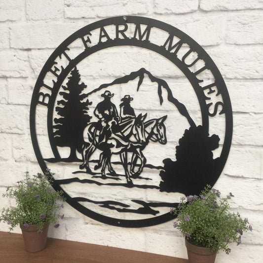 Saddled Mule And Rider Metal Ranch Sign Cowboy Farm Sign Mountain And Outdoor Cabin Custom Metal Sign Christmas Gift