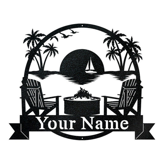 Custom Beach Fire Pit Metal Sign - Personalized Beach Metal Sign - Custom Metal Sign - Housewarming Gift