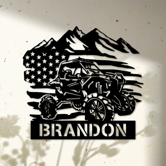 Personalized Atv Metal Wall Art - Personalized US Flag ATV Metal Sign - ATV Gifts