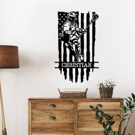 Personalized Lacrosse Player Metal Sign - Sport Wall Art With Custom Name For Home Decor - Birthday Gift - Lacrosse Gift