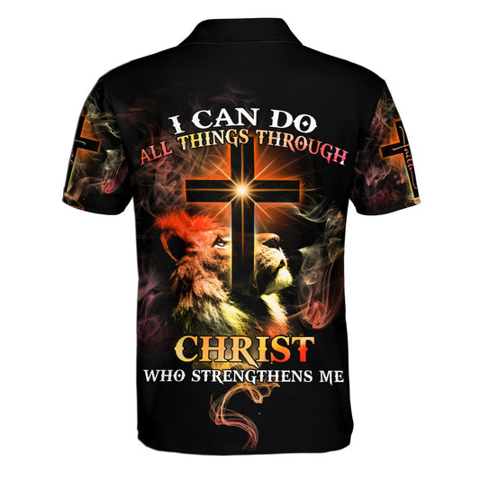 I Can Do All Things Through Christ Who Strengthens Me Lion Cross Polo Shirt - Christian Shirts & Shorts