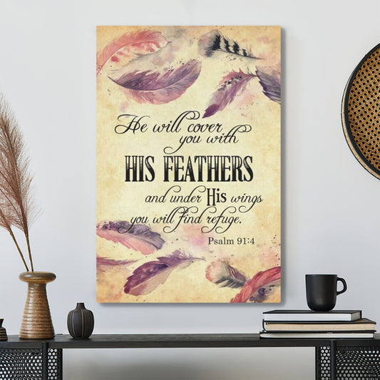 Bible Verse Canvas - Psalm 914 Niv He Will Cover You With His Feathers Canvas - Scripture Canvas Wall Art - Ciaocustom