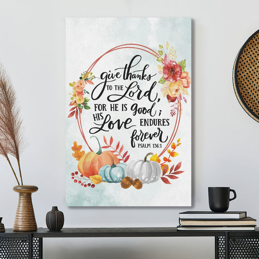 Bible Verse Canvas - Give Thanks To The Lord Psalm 1361 Thanksgiving Canvas Print - Scripture Canvas Wall Art - Ciaocustom
