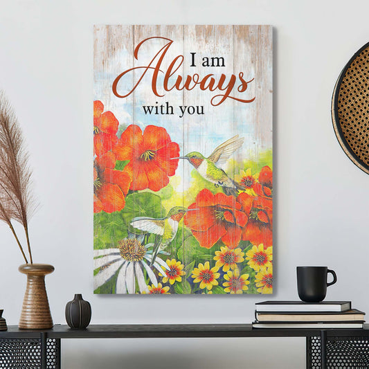 Christian Canvas Wall Art - Jesus Canvas - I Am Always With You Humming Bird And Flower Canvas - Bible Verse Canvas - Ciaocustom