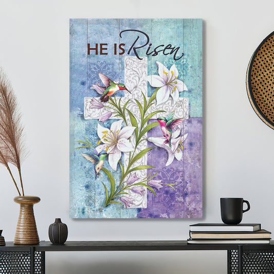 Christian Canvas Art - God Is Risen - Unique Cross And Flower Christian Canvas - Scripture Canvas - Ciaocustom