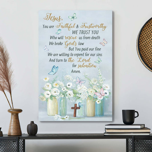 Christian Canvas Art - In Jesus We Trust - Flower And Butterfly Jesus Canvas - Scripture Canvas - Ciaocustom