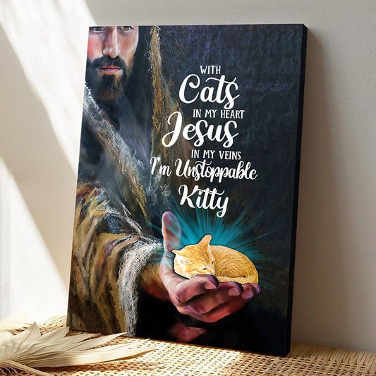God Canvas - Bible Verse Canvas - With Cat In My Heart Jesus In My Veins I'm Unstoppable Canvas Poster - Jesus Canvas - Ciaocustom