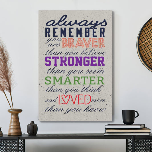 Bible Verse Canvas - Always Remember You Are Braver Than You Believe Christian Wall Art Canvas - Jesus Christ Poster - Ciaocustom