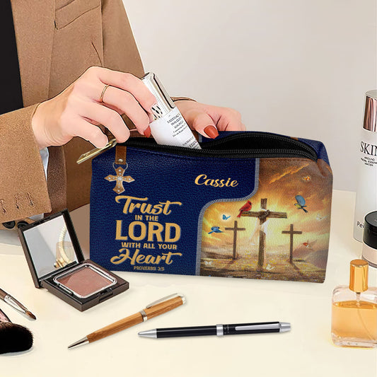 Trust In The Lord With All Your Heart Proverbs 35 Personalized Leather Pouch - Inspirational Gift For Her