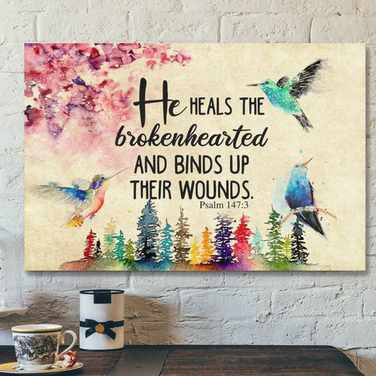 God Canvas Prints - Jesus Canvas Art - He Heals The Brokenhearted Psalm 1473 Bible Verse Wall Art Canvas - Ciaocustom