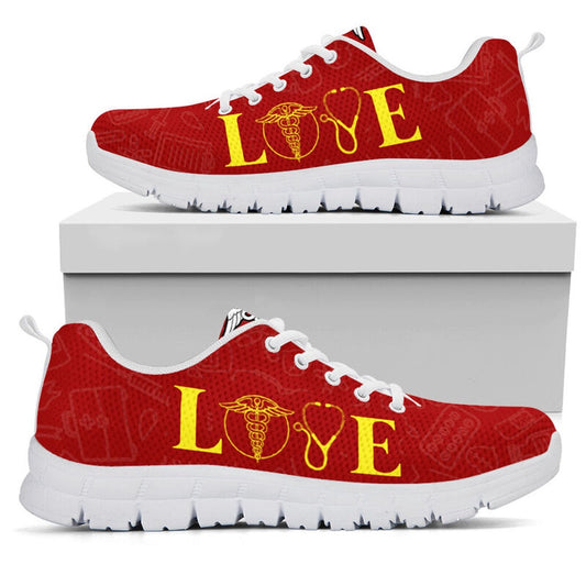 • Nurse Sneaker, Nurse Love Red White Sneakers Shoes, Best Shoes For Nurses
