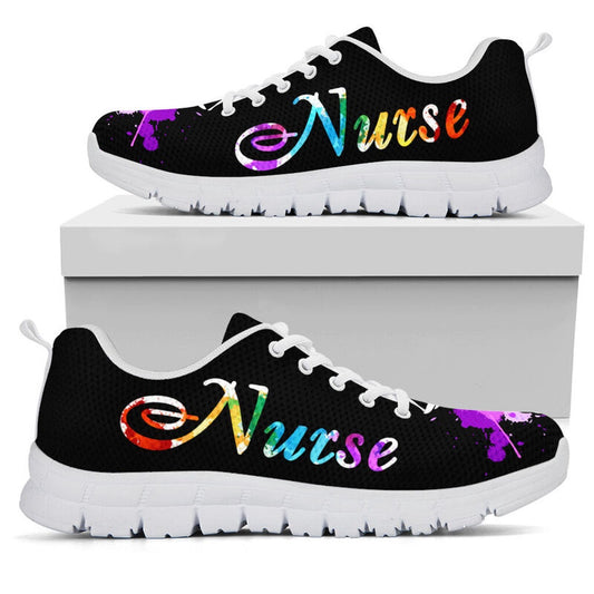 Nurse Sneaker, Nurse Crazy Watercolors Sneakers Shoes, Best Shoes For Nurses
