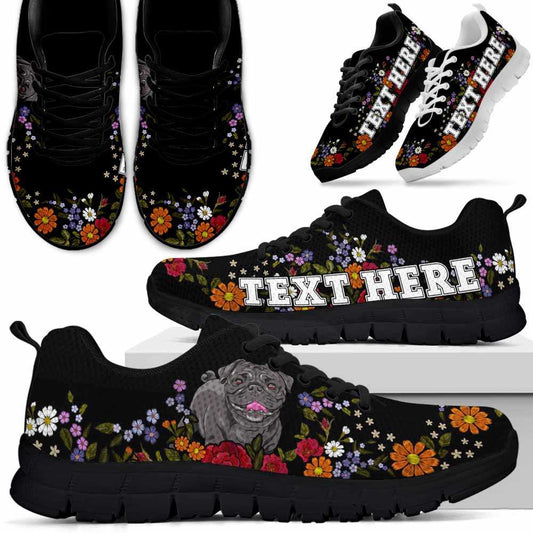 • Custom Name Pug Sneaker, Pug Flower Floral Colorful Dog Lovers Sneakers Gym Running Shoes, Best Running Shoes